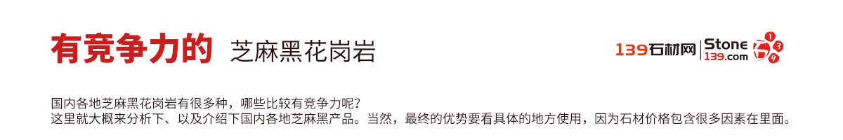 國(guó)內(nèi)各地芝麻黑花崗巖有很多種,哪些比較有競(jìng)爭(zhēng)力呢?這里就大概來(lái)分析下、以及介紹下國(guó)內(nèi)各地芝麻黑產(chǎn)品。當(dāng)然,最終的優(yōu)勢(shì)要看具體的地方使用,因?yàn)槭膬r(jià)格包含很多因素在里面。